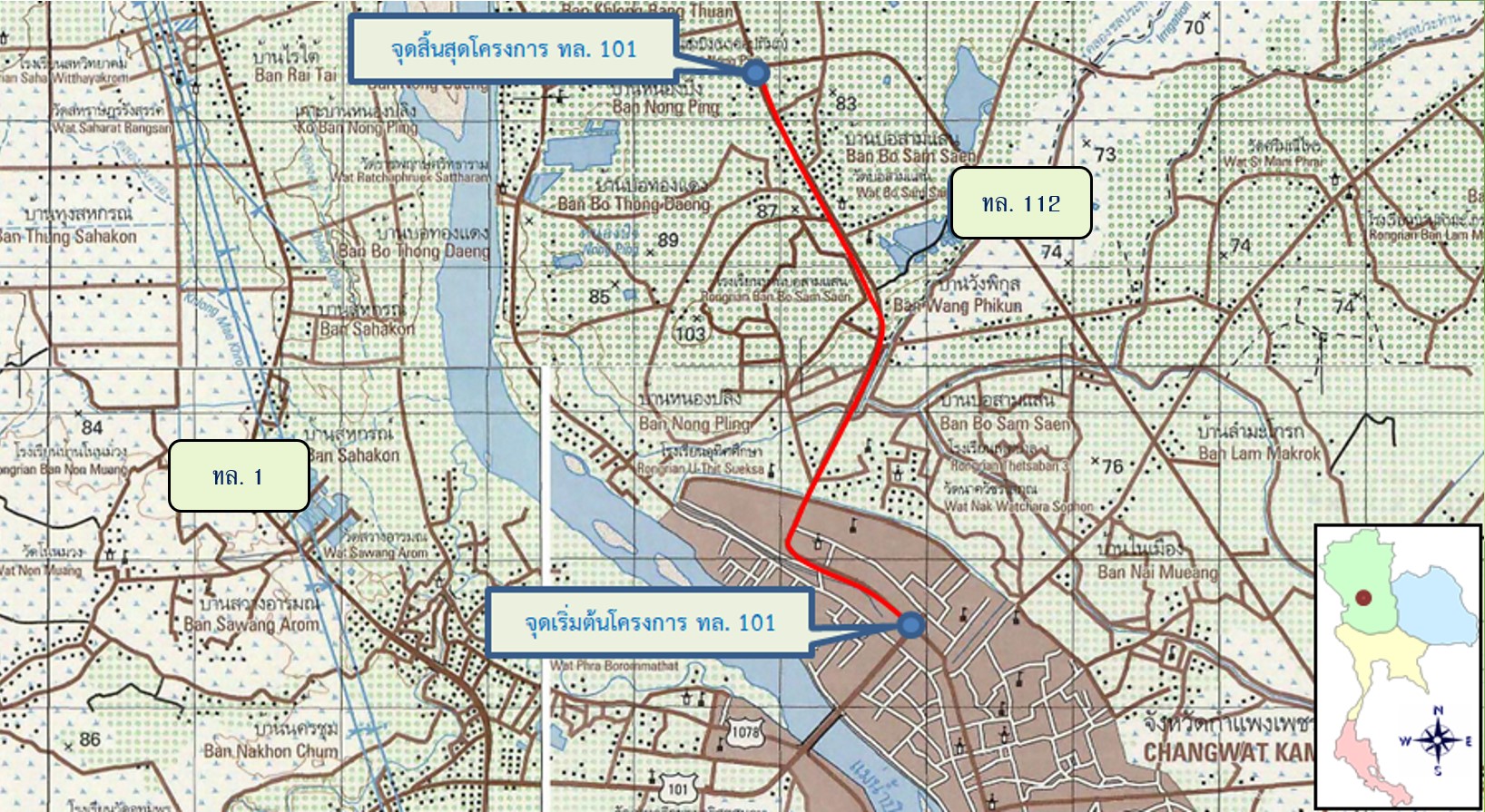 ทางหลวงหมายเลข 101 สายในเมือง - ต.หนองปลิง เป็นทางหลวงใน จ.กำแพงเพชร เชื่อมต่อระหว่างทางหลวงหมายเลข 1 กับทางหลวงหมายเลข 112 เป็นเส้นทางหลักที่ใช้เดินทางภายในตัวเมือง จ.กำแพงเพชร ปัจจุบันแนวเส้นทางมีปริมาณการจราจรเพิ่มขึ้นอย่างต่อเนื่อง ทำให้ผู้ใช้ทางไม่ได้รับความสะดวกในการเดินทาง อีกทั้งแนวเส้นทางของโครงการผ่านพื้นที่อ่อนไหวทางด้านสิ่งแวดล้อม ซึ่งเข้าข่ายต้องจัดทำรายงานการวิเคราะห์ผลกระทบสิ่งแวดล้อม (EIA) ตามประกาศกระทรวงทรัพยากรธรรมชาติและสิ่งแวดล้อม เรื่อง กำหนดประเภทและขนาดโครงการหรือกิจการซึ่งต้องจัดทำรายงานการประเมินผลกระทบสิ่งแวดล้อมฯ เพื่อให้เป็นไปตามมาตรา 48 แห่ง พ.ร.บ.ส่งเสริมและรักษาคุณภาพสิ่งแวดล้อมแห่งชาติ พ.ศ.2535 และ ฉบับที่ 2 พ.ศ.2561 ดังนั้น จึงมีความจำเป็นต้องดำเนินการศึกษาผลกระทบสิ่งแวดล้อม เพื่อให้สอดคล้องกับประกาศกระทรวงทรัพยากรธรรมชาติและสิ่งแวดล้อมข้างต้น ทั้งนี้ เพื่อให้การพัฒนาโครงการก่อให้เกิดผลกระทบต่อทรัพยากรธรรมชาติและสิ่งแวดล้อม รวมทั้งประชาชนที่อยู่บริเวณพื้นที่โครงการน้อยที่สุด